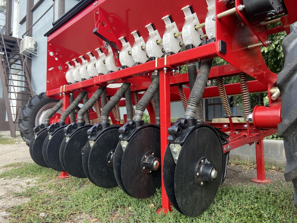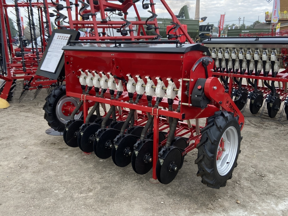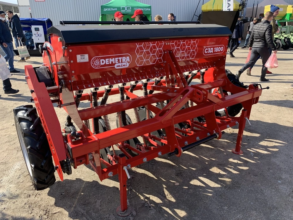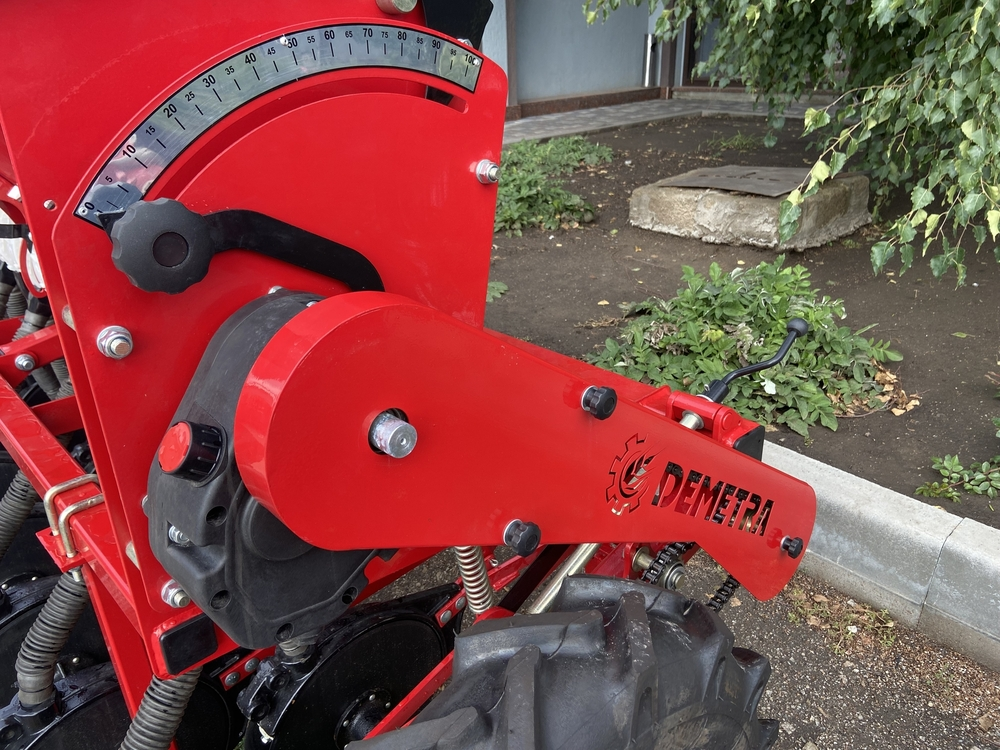 Сеялка зернотуковая "ДЕМЕТРА МИНИ" 1800V, c бесступенчатой коробкой передач(вариатор), предназначена для рядового посева зерновых культур (пшеницы, ячменя, ржи, овса), зернобобовых (соя, горох, фасоль, нут, чечевица, бобы), мелкосемянных культур (рапс, горчица, лен) сыпучих и средне сыпучих семян трав с одновременным внесением минеральных удобрений.