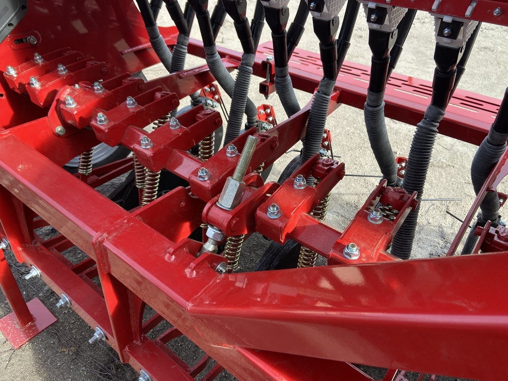 Зерновой высевающий аппарат имеет двохуровневую зубчатую катушку, которая обеспечивает бесперебойную подачу зерна. Штифтовая катушка предназначена для высева мелкосемянных культур.