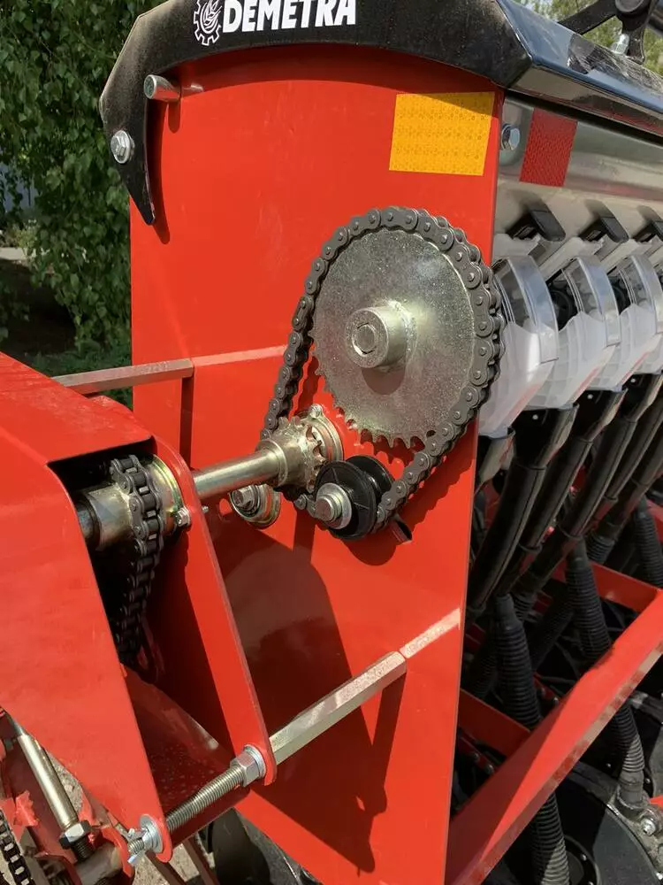Сівалка зернотукова " ДЕМЕТРА МІНІ" 1500V, безступінчастою коробкою передач (варіатор), призначена для рядового посіву зернових культур (пшениці, ячменю, жита, вівса), зернобобових (соя, горох, квасоля, нут, сочевиця, боби), дрібн , гірчиця, льон) сипучого та середньо сипучого насіння трав з одночасним внесенням мінеральних добрив.